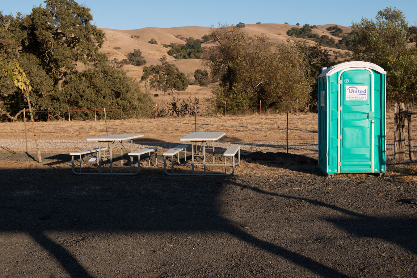 There is a Porta Potty, 2 picnic tables, running water and electricity was just about complete.