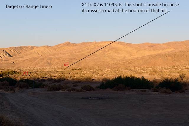 Target 6 / Range Line 6 is 1109 yds. This has problems too. There is a road right under the targets.