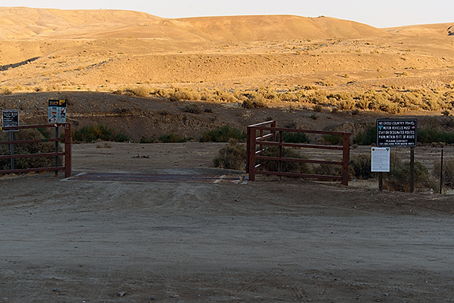 From I5, take the W. Panoche Rd exit and go west. Nice to have gas stations and food available in case right off the exit! Take the  W. Panoche Rd. 2 miles to the first gate. The pavement will end and it is a just a dirt road in great condition. From where the pavement ends, it is 1 mile to the gate. You can't miss the sign!